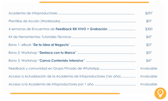 Academia de Infoproductores + 4 semanas de Mentoría + 12 meses de acceso al portal con actualizaciones del curso base
