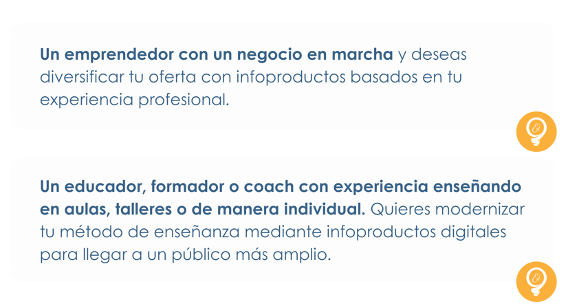 Convierte tus conocimientos y experiencia profesional en un negocio digital rentable.