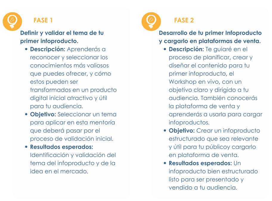 Validarás tu Idea de infoproductos y crearás tu primer producto digital basado en tus habilidades, experiencia y conocimientos. Además aprenderás a usar las plataformas que te permitirán vender tus productos a nivel mundial.