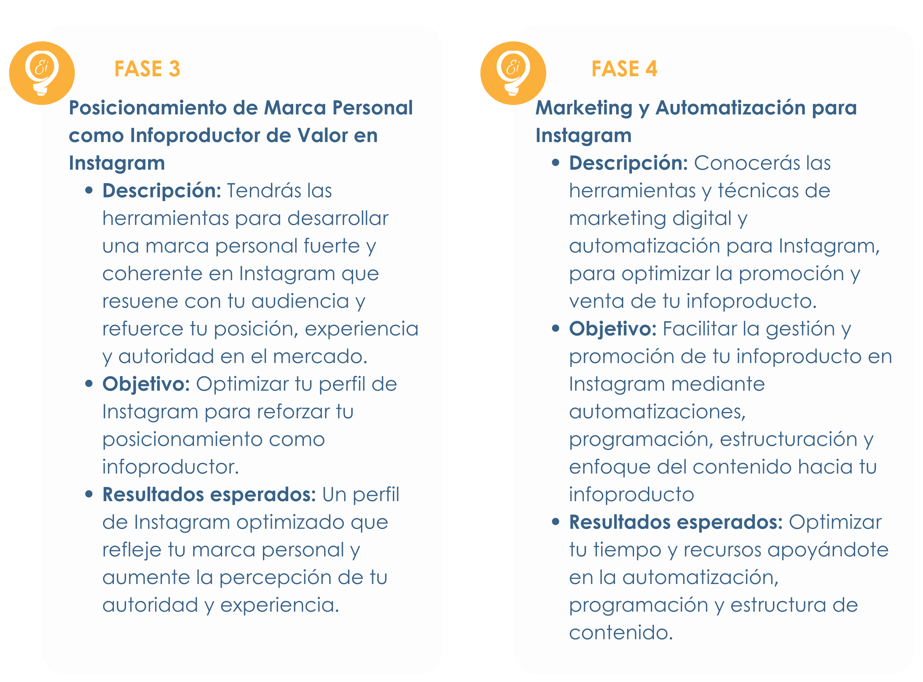 Optimizarás tu perfil en Instagram como infoproductor y experto en tu área. Conocerás el contenido estratégico que debes crear para transmitir esa experiencia, generar confianza y conectar con una audiencia que resuene con tu esencia.